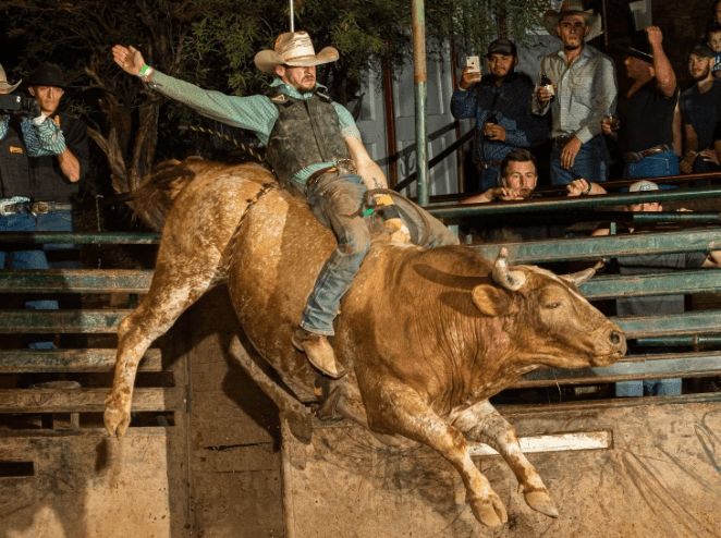 “Did you know they put an elastic string around a bull’s testicles to make it go crazy like that?”