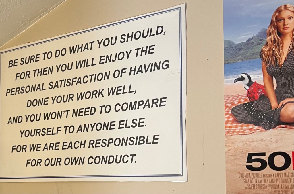 Be sure to do what you should—it reads— for then you will enjoy the personal satisfaction of having done your work well, and you won’t need to compare yourself to anyone else, for we are each responsible for our own conduct.